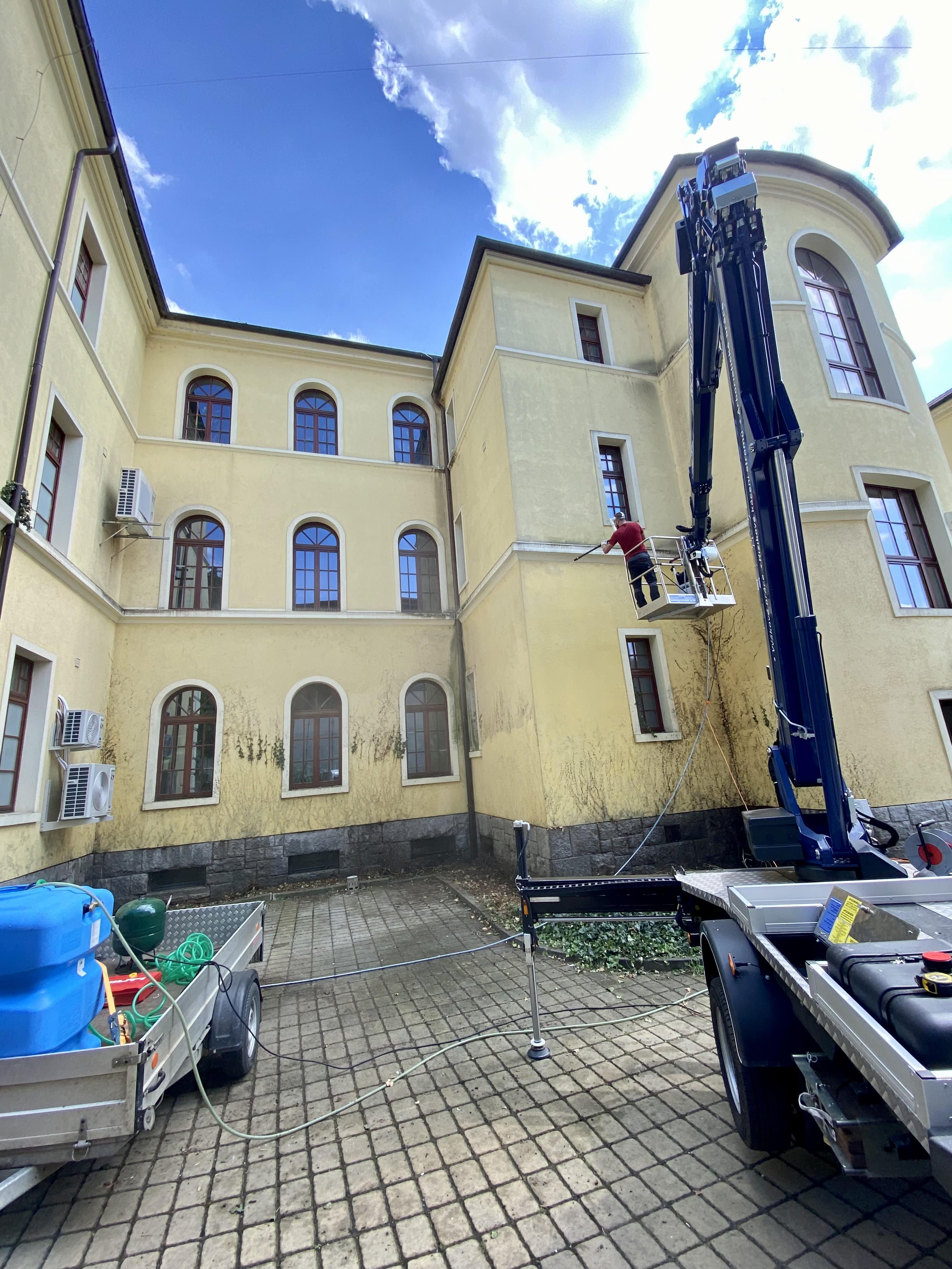 - Opravy a renovace fasád – odstranění degradovaných vrstev, doplnění omítek, sanační práce, ochranné a dekorativní nátěry.